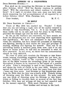 1914-ct-russell-exchange ← Previous Next → Share This Post: You May Also Like Holidays and Celebrations November 17, 2011December 10, 2011 Juan Viejo Watchtower and Awake magazine printing down 39 percent since 2005 July 15, 2013July 15, 2013 Cedars More downsizing on the way? Multiple sources report bethel letter warning of further cuts September 23, 2015September 24, 2015 Cedars Leave a Reply Cancel replyYour email address will not be published. Required fields are marked *Comment * Name * Email * Website