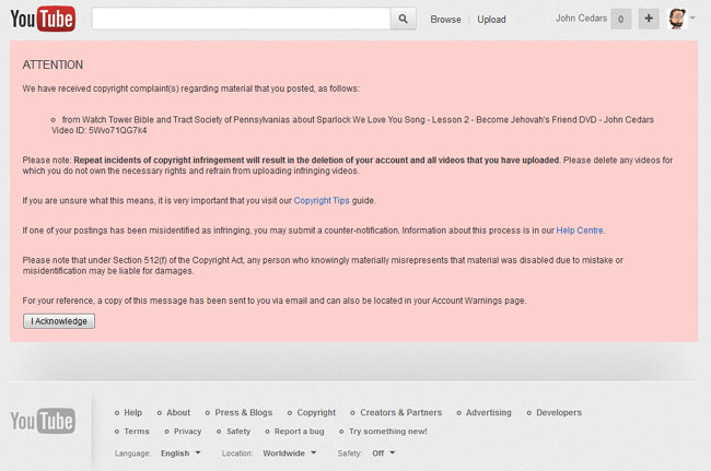 sparlock-copyright-1 ← Previous Next → Share This Post: You May Also Like Article in major UK Newspaper: “We need to do more to tackle sex abuse among Jehovah’s Witnesses” January 26, 2017January 26, 2017 Covert Fade News Bulletin: Confidential Watchtower Letter Reveals JW.org Security Issues September 8, 2016September 8, 2016 Covert Fade The 2016 Global Survey of Jehovah’s Witnesses is launched! February 8, 2016February 8, 2016 Cedars Leave a Reply Cancel replyYour email address will not be published. Required fields are marked *Comment * Name * Email * Website